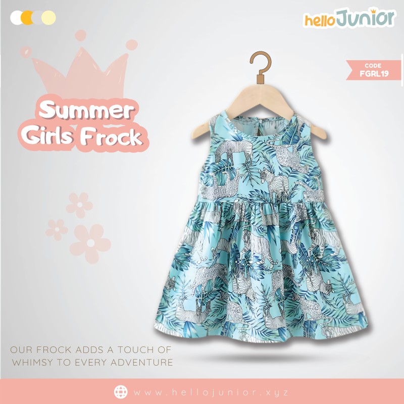 Hello Junior Summer Cotton Frock for Baby Girls (1-5.5 Years), Blue