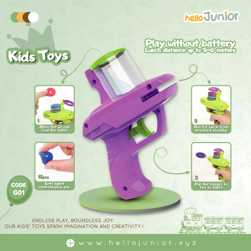 Materials: Durable Plastic launcher and soft, safe EVA flying discs.
