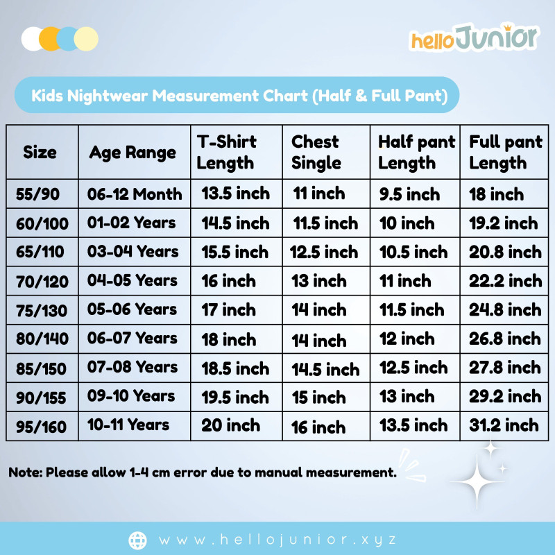 Hello Junior Kids Nightwear / PJ Set / Night Dress (6 Months to 11 Years)